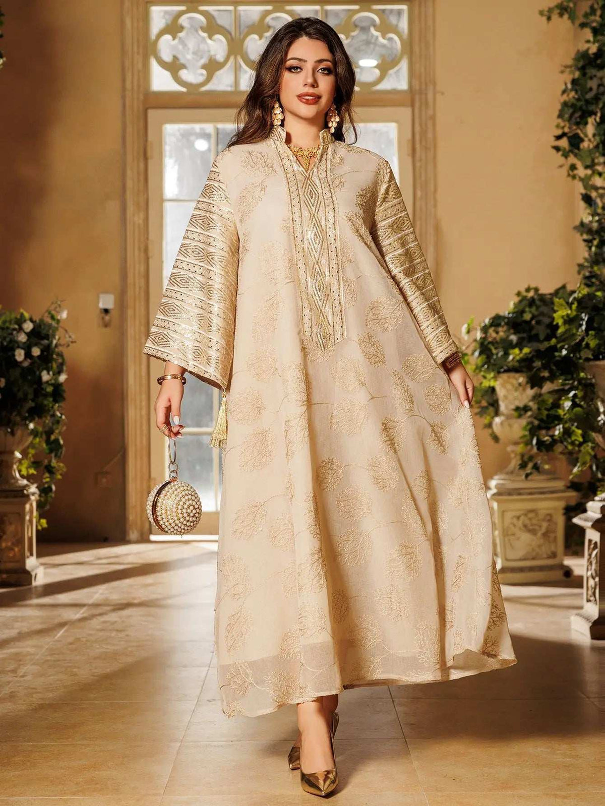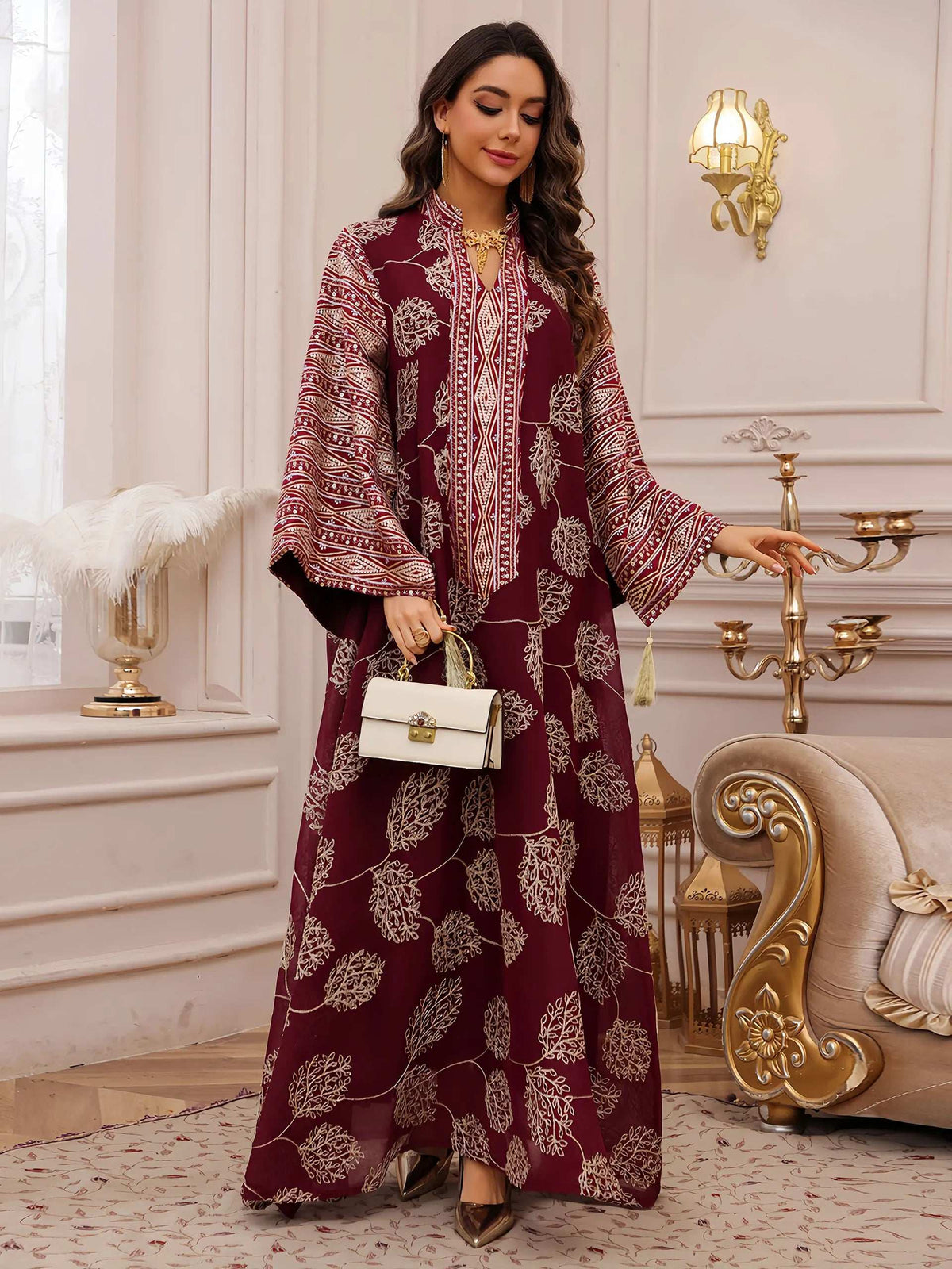 • Decoration: Intricate gold embroidery