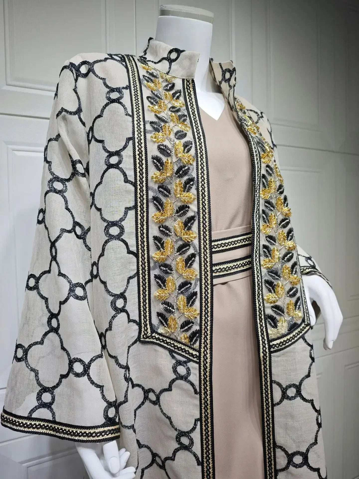 🌙 Elevate your modest wardrobe with our Embroidered Eid Abaya Set. This two-piece ensemble includes a beautifully embroidered open abaya cardigan and a matching inner dress – making it the perfect outfit for Ramadan, Eid, weddings, and special occasions. ✨