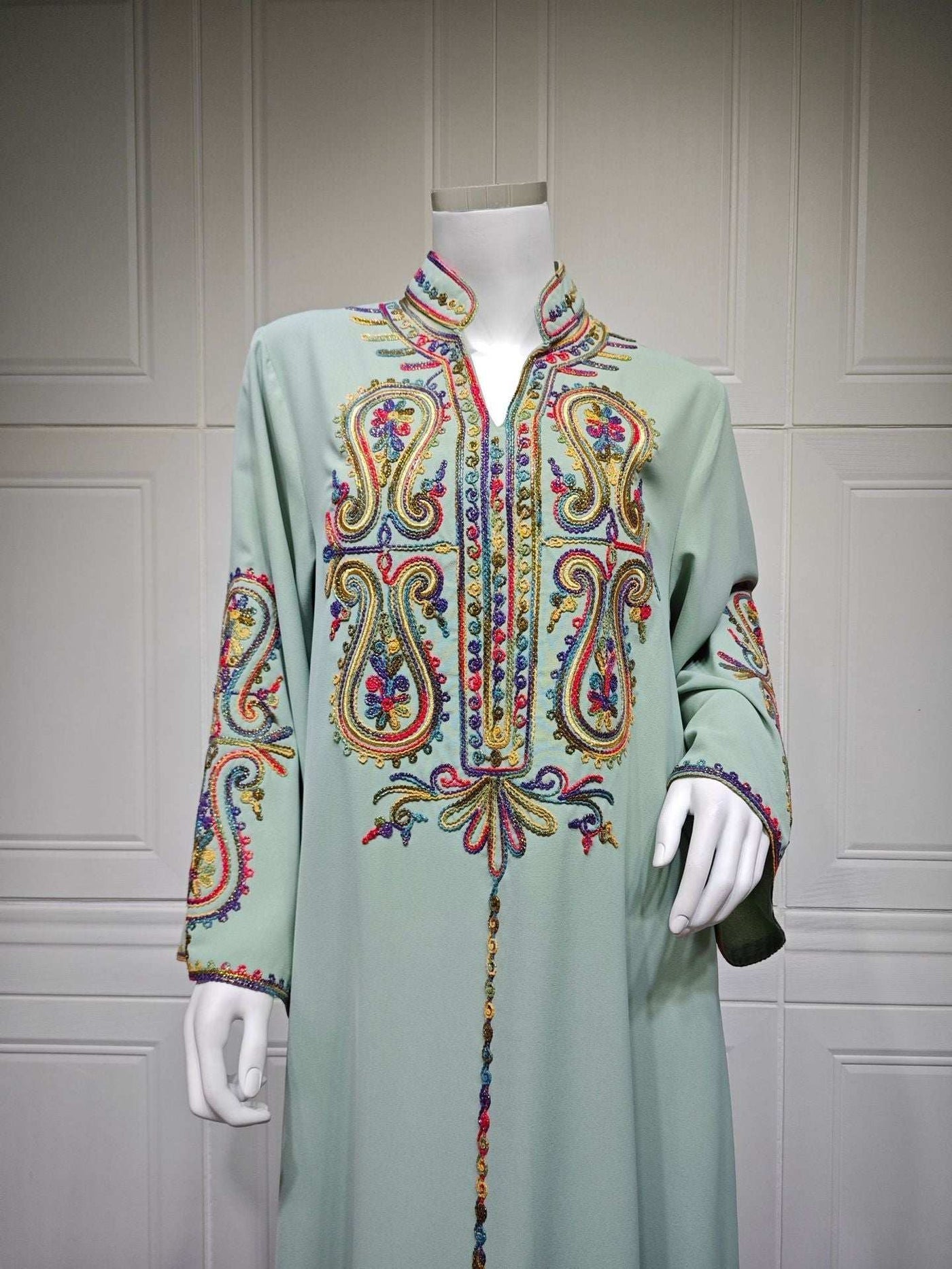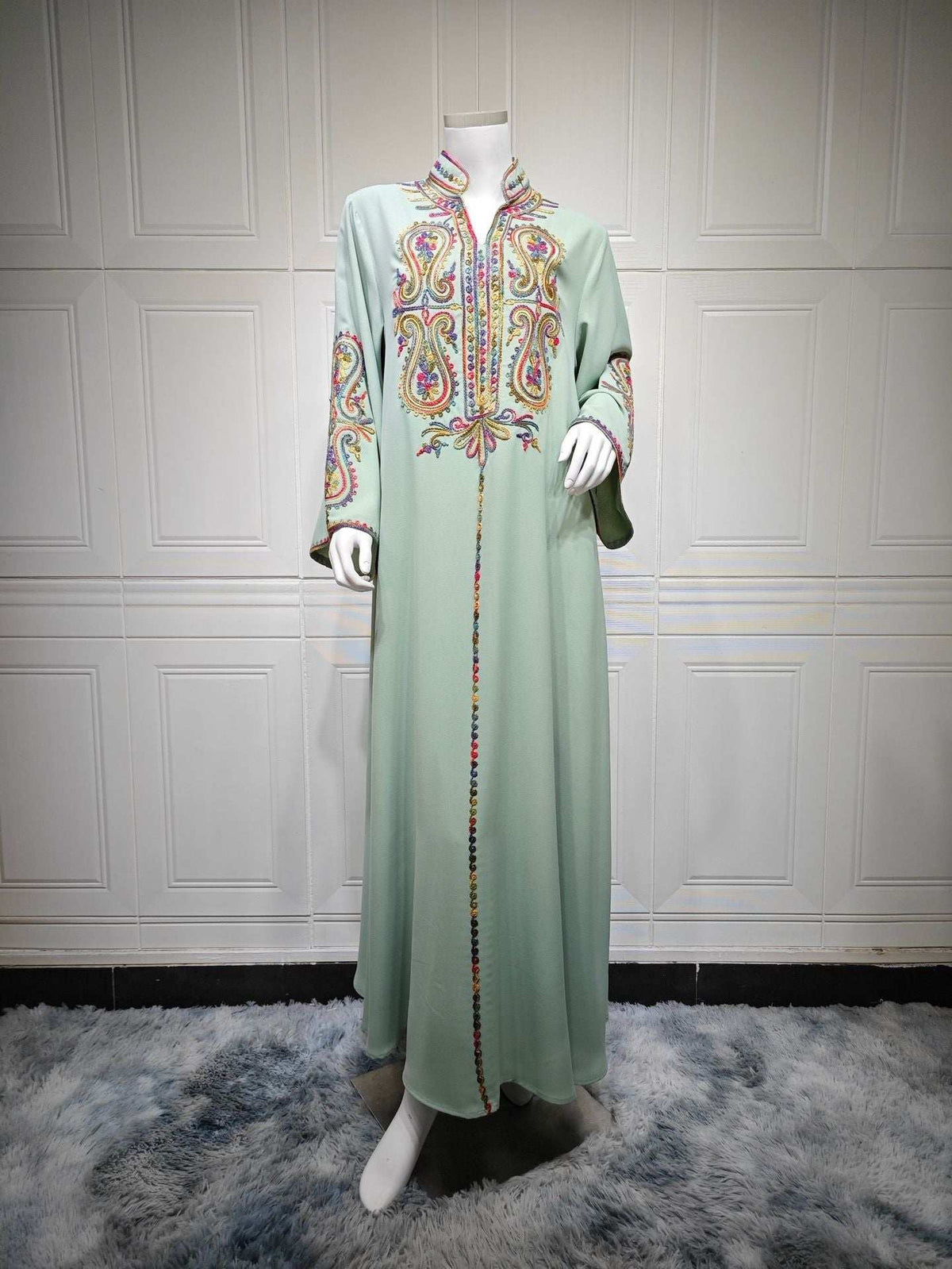 Embroidered Moroccan Abaya - Green / S
