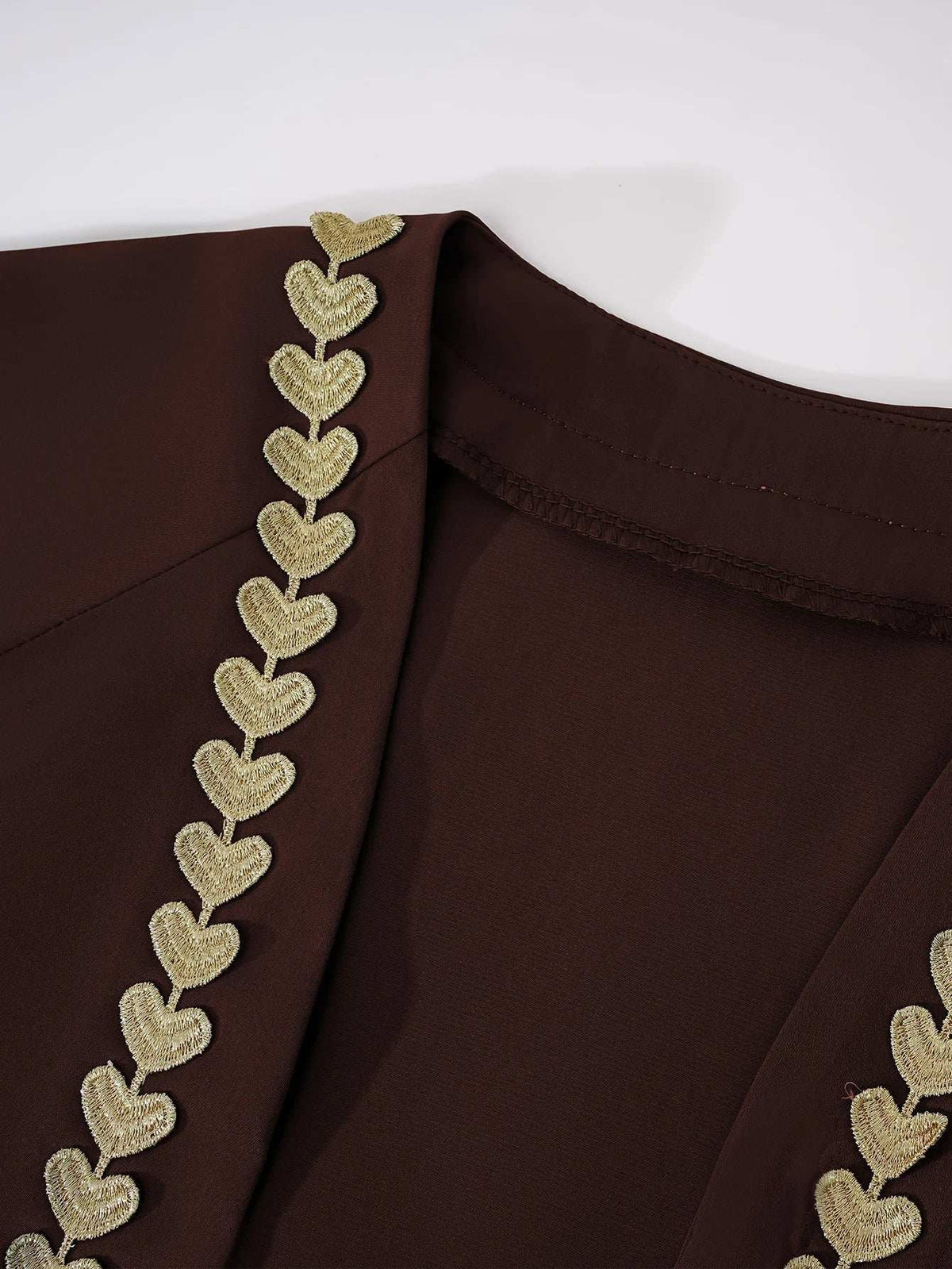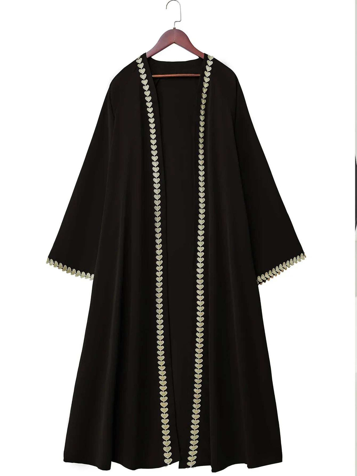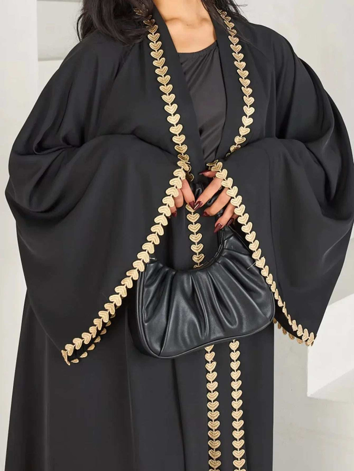 Experience refined elegance with the Emerald Gold Edge Abaya, crafted in a rich dark green tone and detailed with golden heart-embellished edges. Designed for comfort and sophistication, this loose-fit abaya is perfect for Middle Eastern fashion lovers seeking timeless modesty.