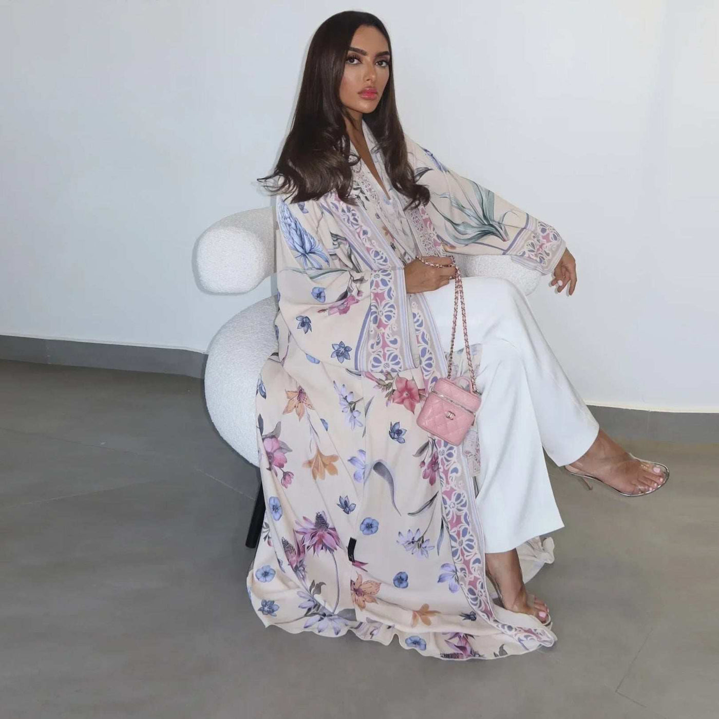 Step into sophistication with our Floral Elegance Abaya, a stunning open-front design with a matching inner dress. Perfect for Ramadan, Eid, and formal gatherings, this abaya brings a blend of comfort and luxury to your modest wardrobe.