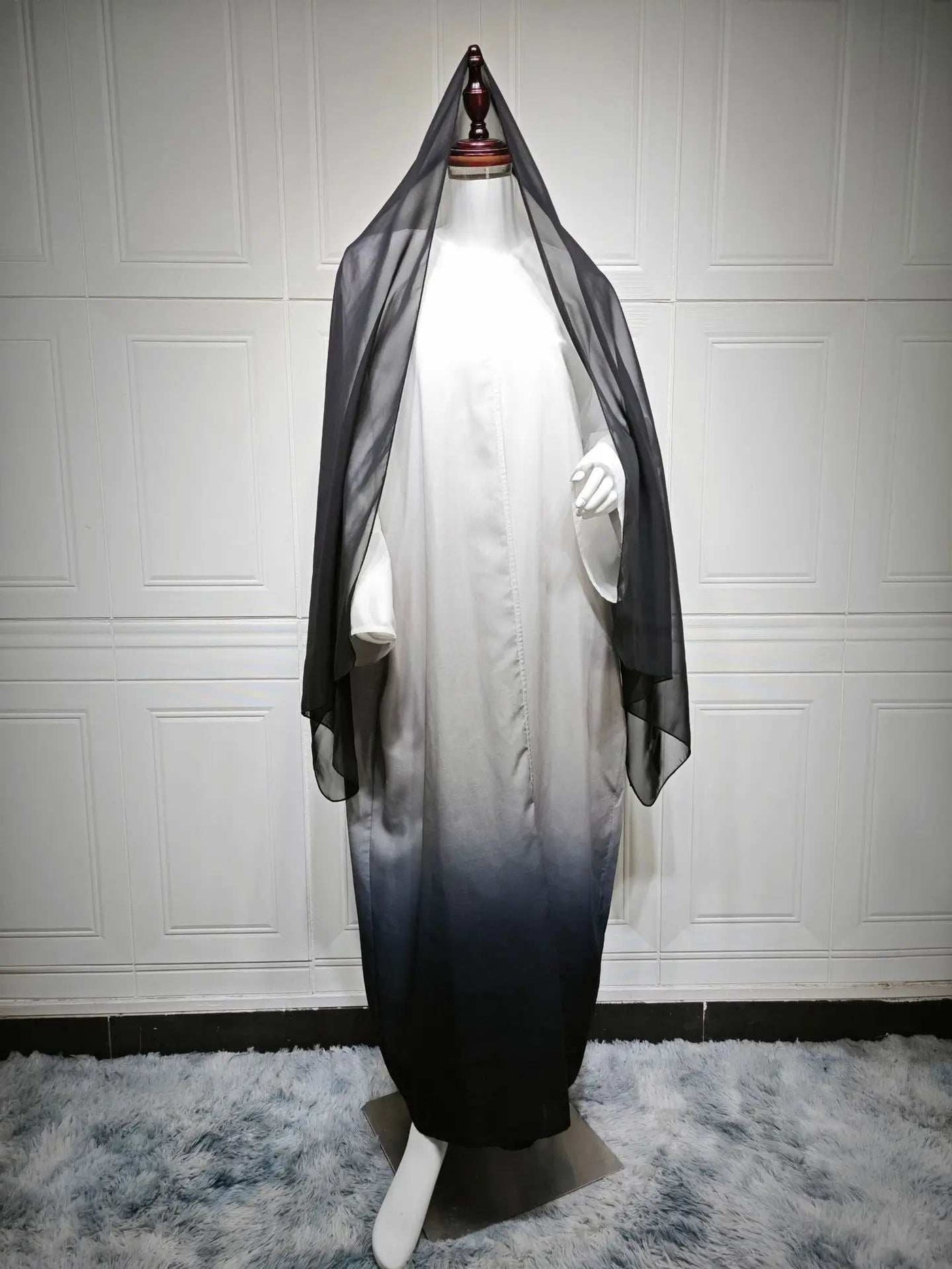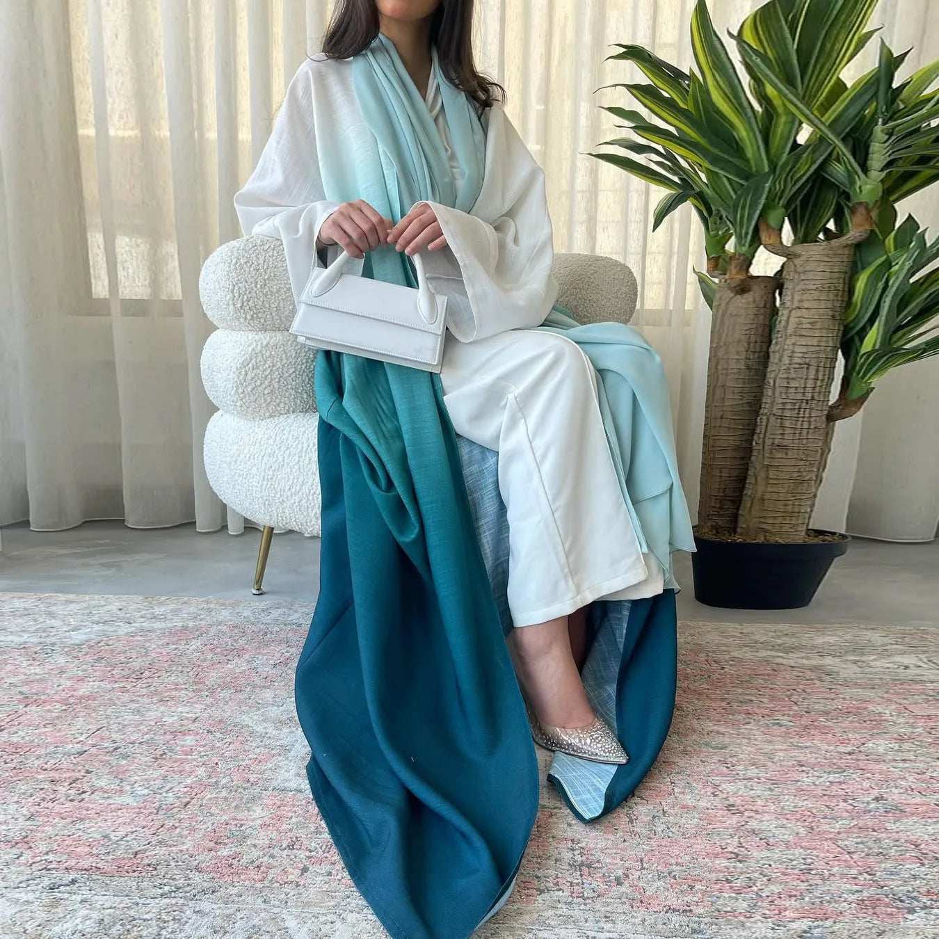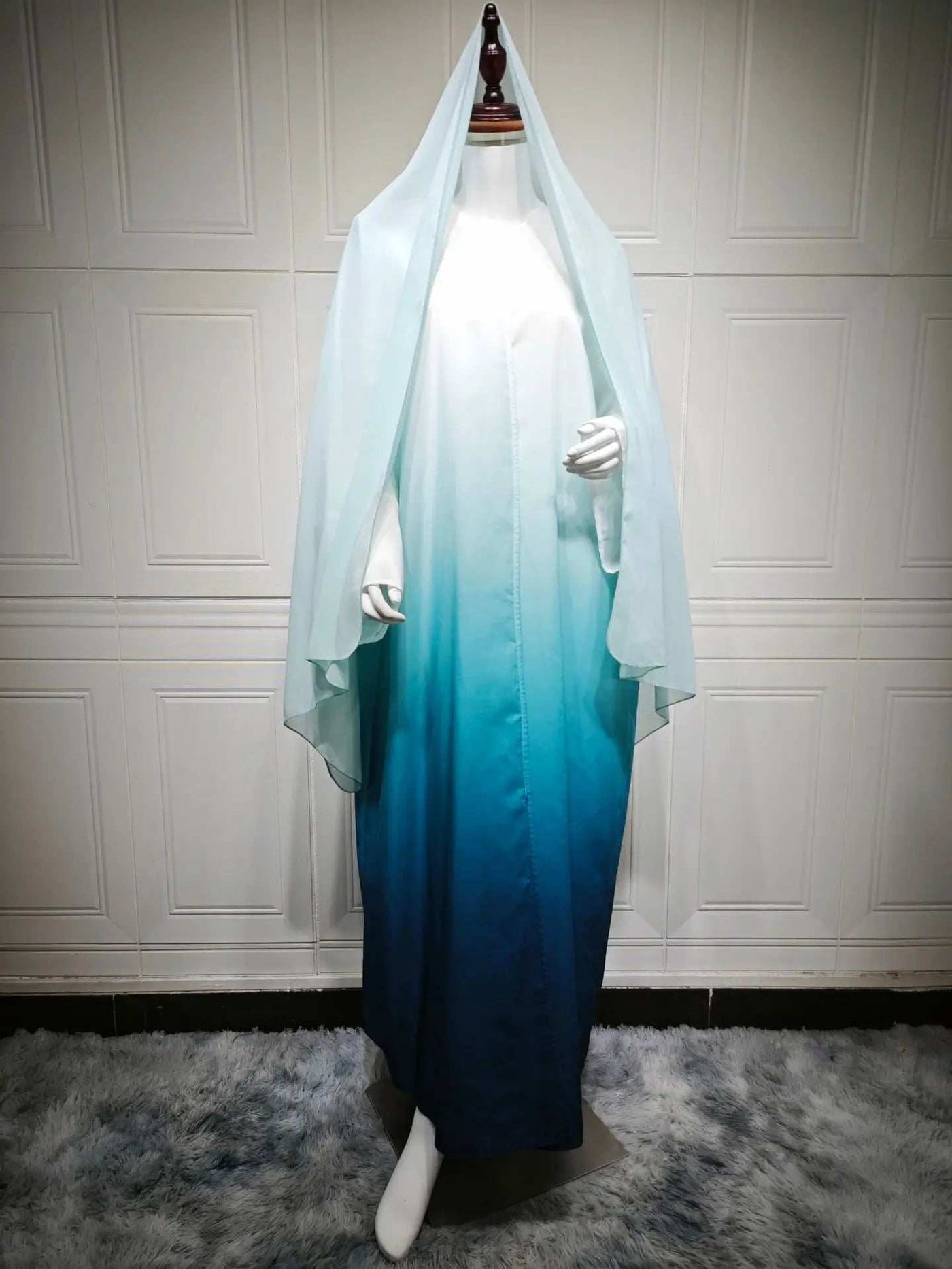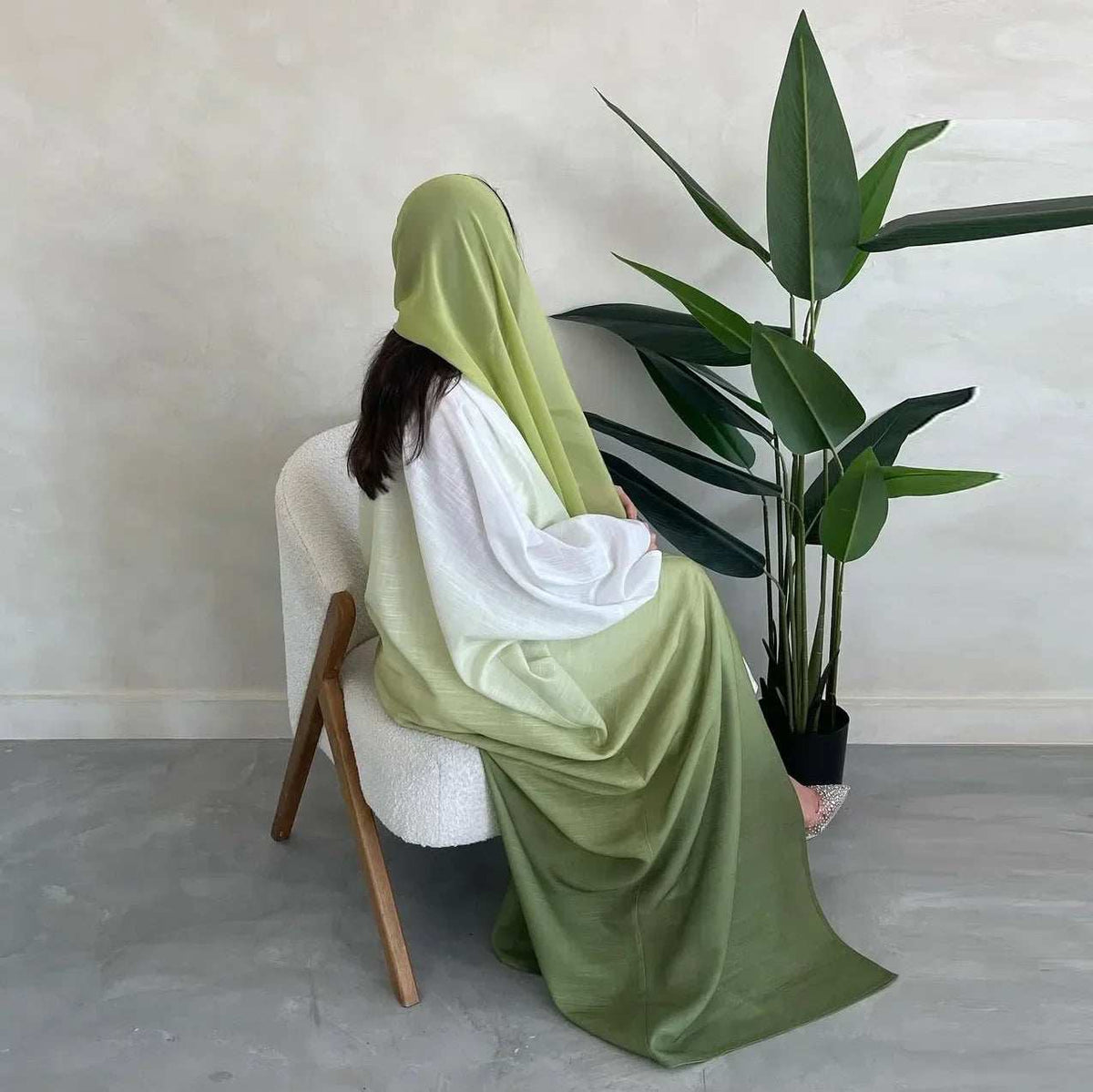 🌸 Embrace elegance with our Gradient Shine Abaya Set. This two-piece outfit includes a flowy gradient abaya and matching scarf, giving you effortless modesty with a touch of luxury. Perfect for Eid, Ramadan, weddings, or special occasions. ✨