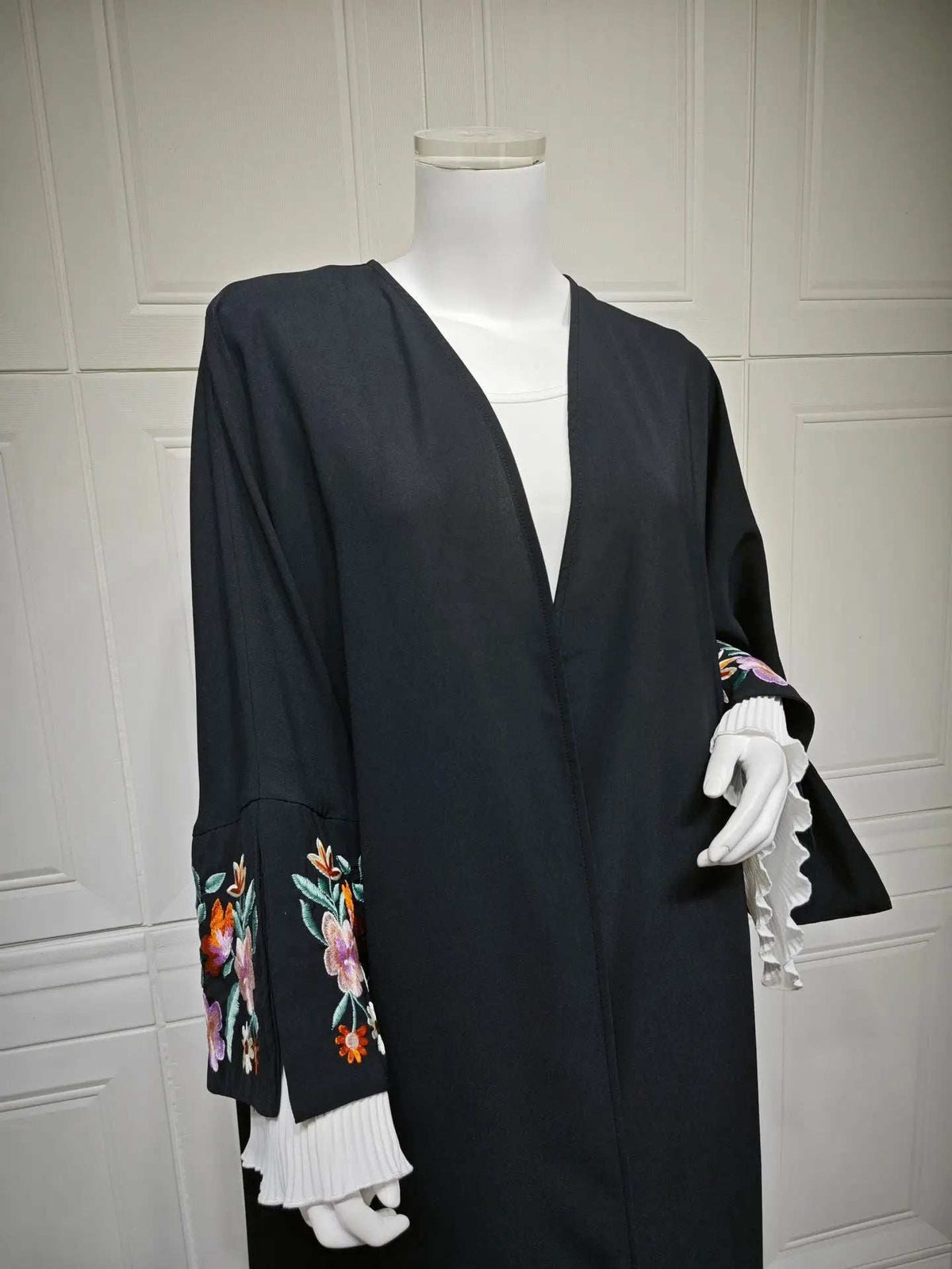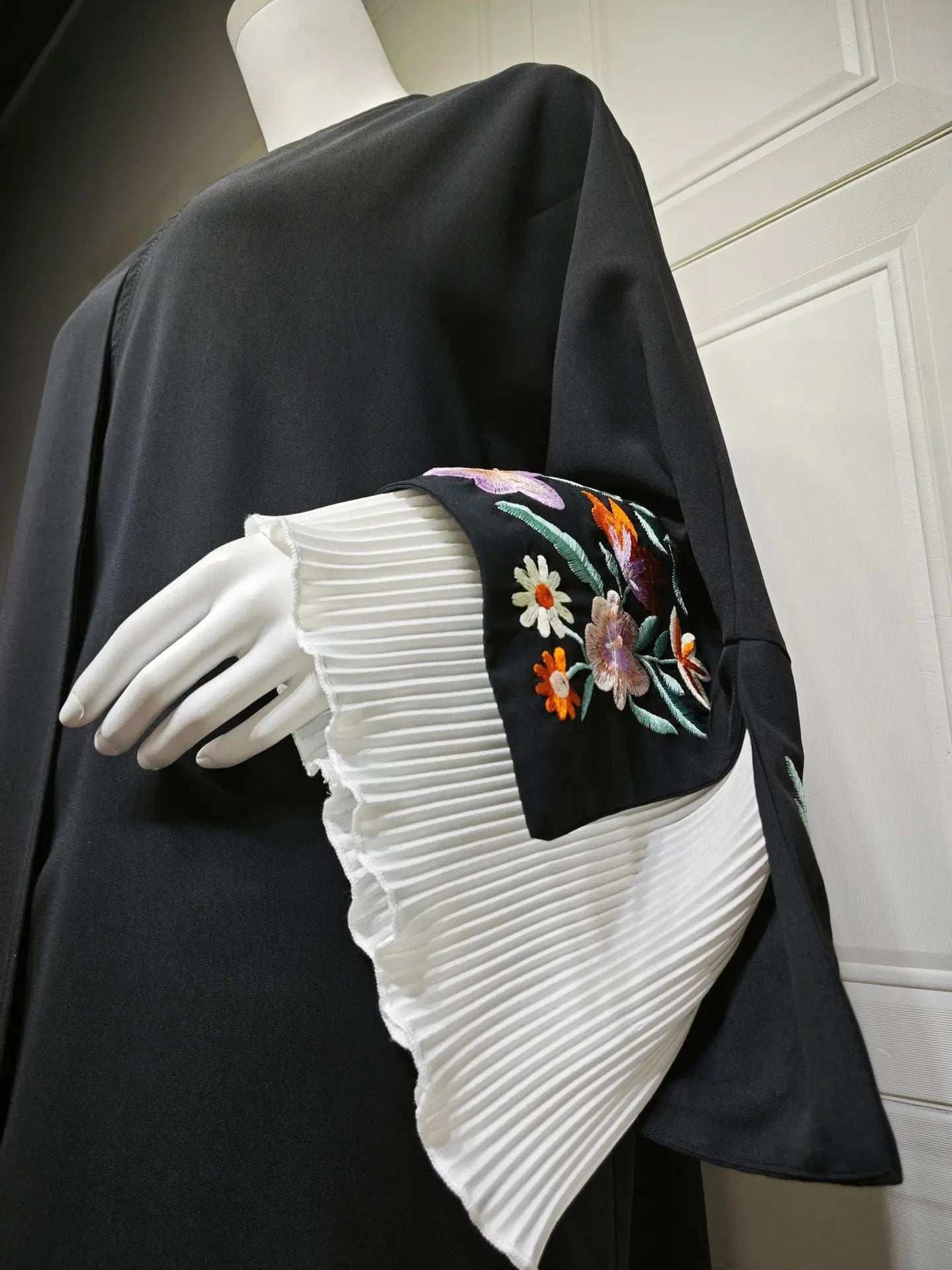 💎 Add elegance to your look with the Layali Embroidered Abaya. Designed with intricate embroidery and flowy ruffle sleeves, this piece is ideal for weddings, gatherings, and Eid celebrations.