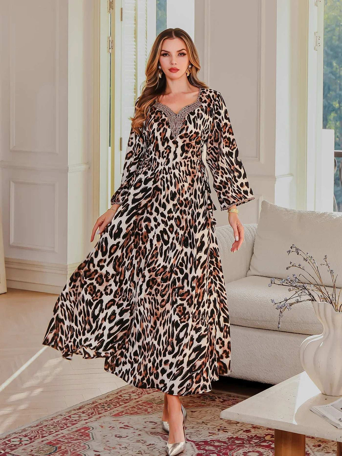 This elegant abaya features a loose-fit design with long sleeves and rhinestone accents, making it perfect for weddings, formal occasions, or evening wear. Crafted from lightweight polyester with a modest floor-length cut, it provides a balance of style and sophistication.